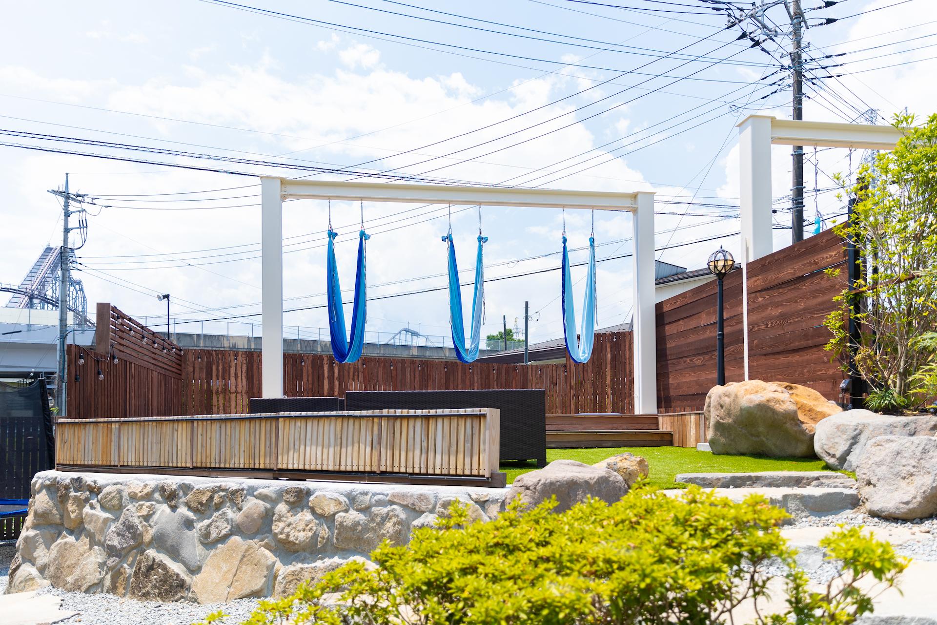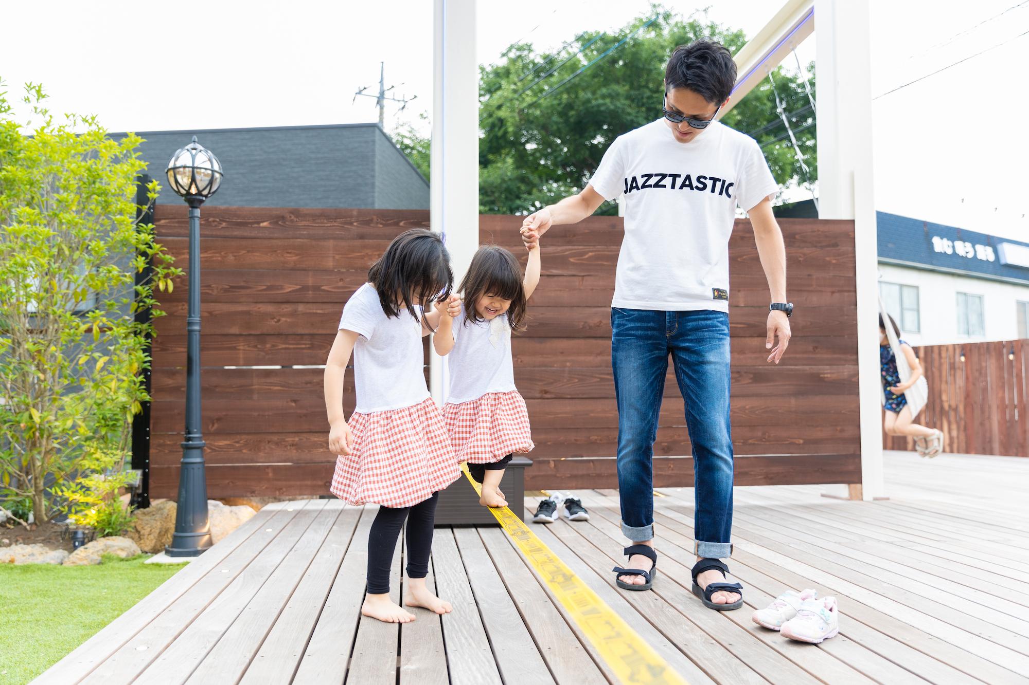 プライベートガーデン内のウッドデッキで楽しむスラックラインは、初心者から上級者まで誰でも挑戦できます。お子様から大人まで、一緒に楽しめるアクティビティとして大人気です。新しいチャレンジで、素敵な思い出を作りましょう。